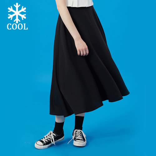 [19차 재입고] WOMEN 쿨링 냉장고 세미 플레어 미디 롱치마 [블랙] 롱스커트 ver.