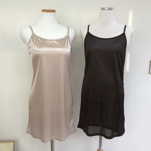[원피스이너속옷] 실크 새틴 홈웨어 끈나시 롱슬립 롱속치마 슬립웨어