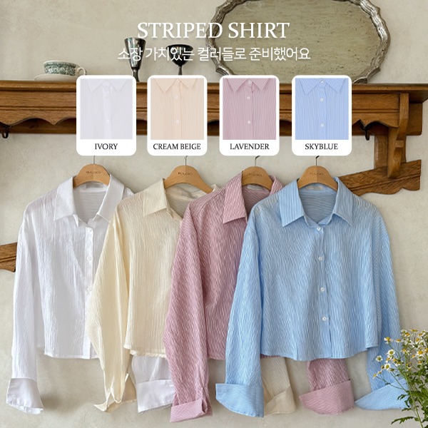[시즌오프/2만장돌파/made] 스테디 스트라이프 크롭셔츠 - 4 Color (썸머/여행룩/바캉스/휴양지/긴팔/살안타템/시어서커)