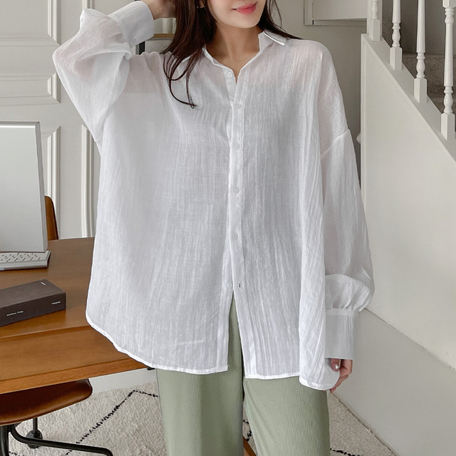 빅사이즈 55-120 보엔 베이직 오버핏 시스루 남방 셔츠 휴양지 룩 장마룩