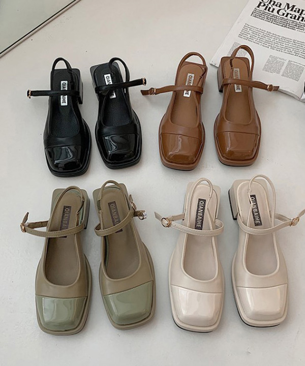 무료배송 슬링백 스퀘어플랫 (블랙,아이보리,브라운,그린) (합성가죽 / 4cm225-245)
