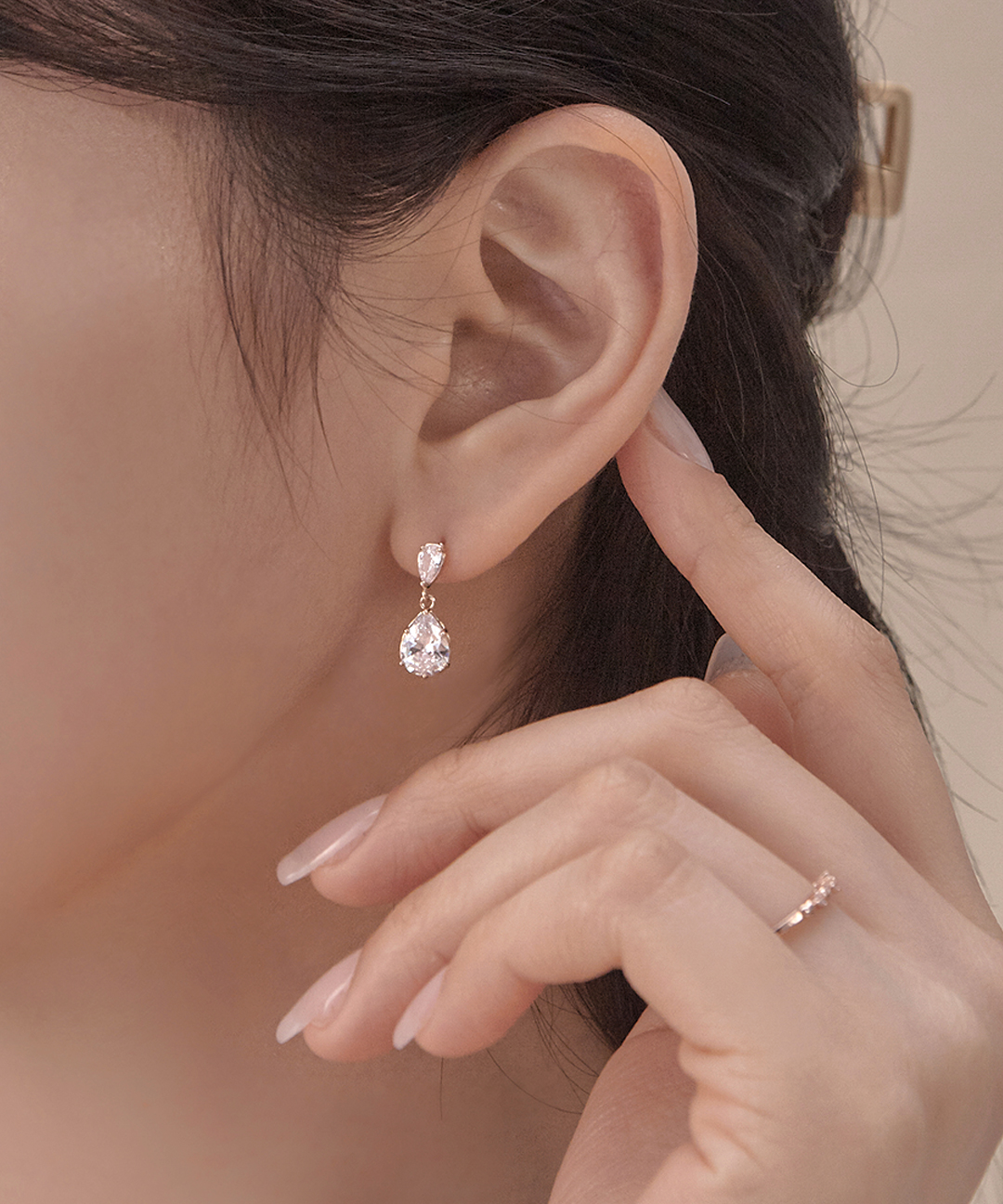실버925 물방울 티어 드롭 큐빅 귀걸이/귀찌