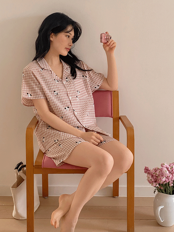 [뉴컬러추가!/4천장 돌파] J'eu 퍼피 깅엄체크 반팔 파자마 잠옷 세트 3color, 2size