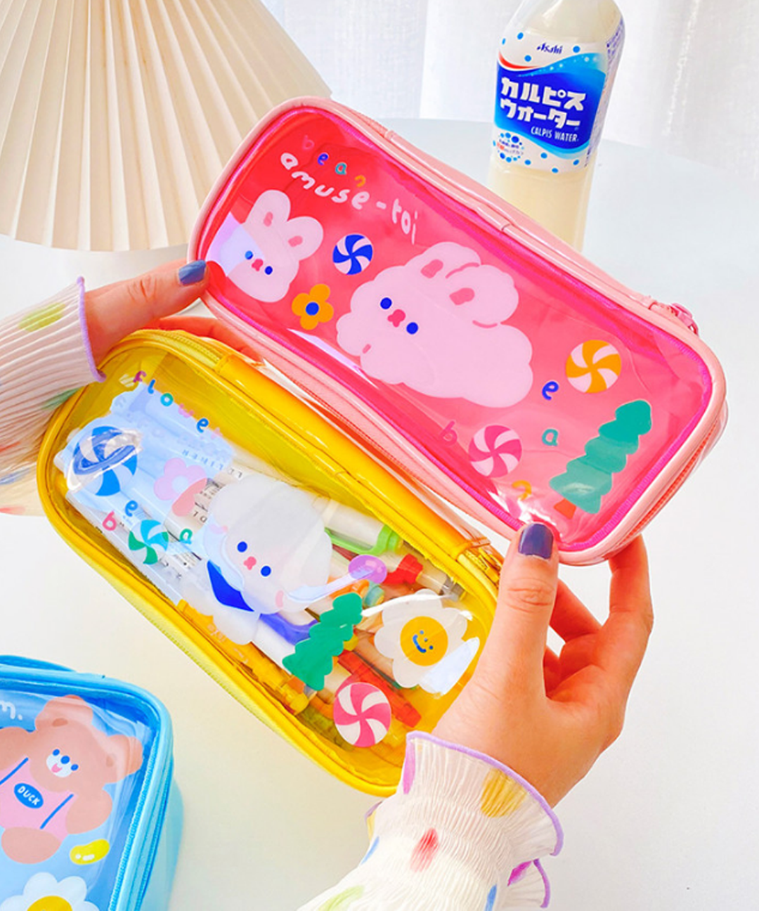 PVC 투명 대형 필통 펜 케이스 대용량 큰 파우치 귀여운 캐릭터 중학생 고등학생 대학생