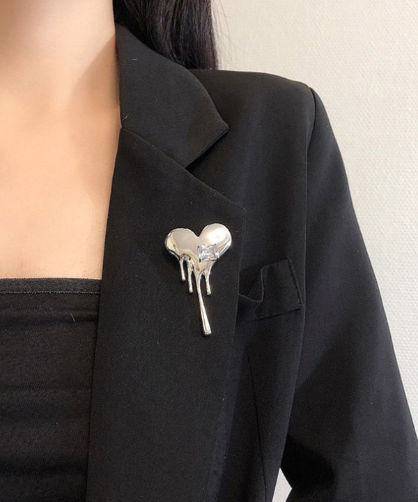 무료배송 멜팅크롬하트 브로치 (골드,실버) [#코디아이템 #액세서리]