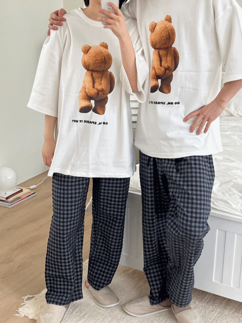 [커플] 백 테드19 베어 반팔 티셔츠 (1color)