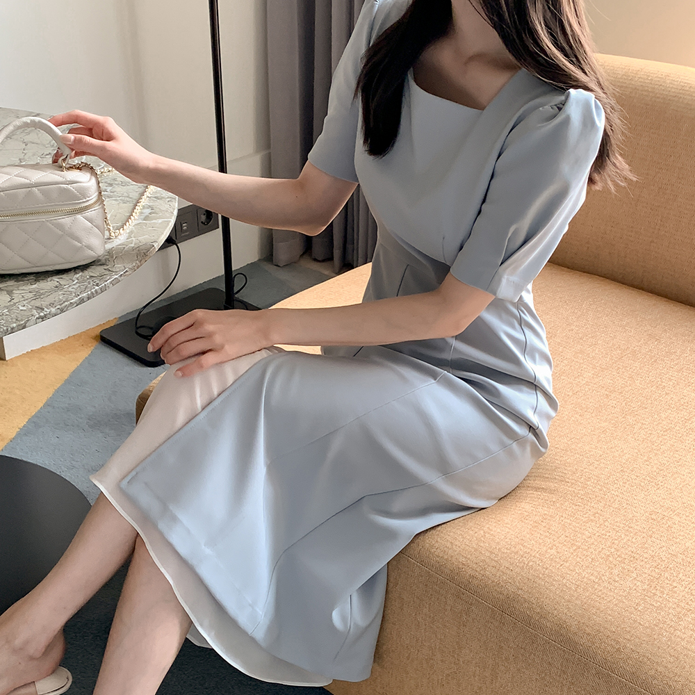 [하객룩❤/Dali made]엘라 배색 쉬폰 슬릿 반팔 롱 원피스(하객룩)