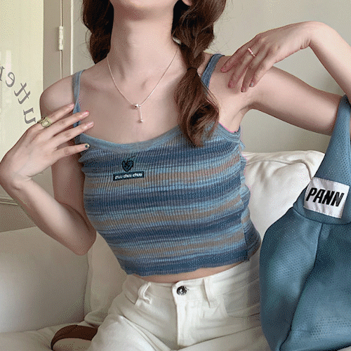 [여름신상/여름나시]XX체리 로고 나염 끈 나시 민소매 레인보우 파스텔 골지 크롭 니트