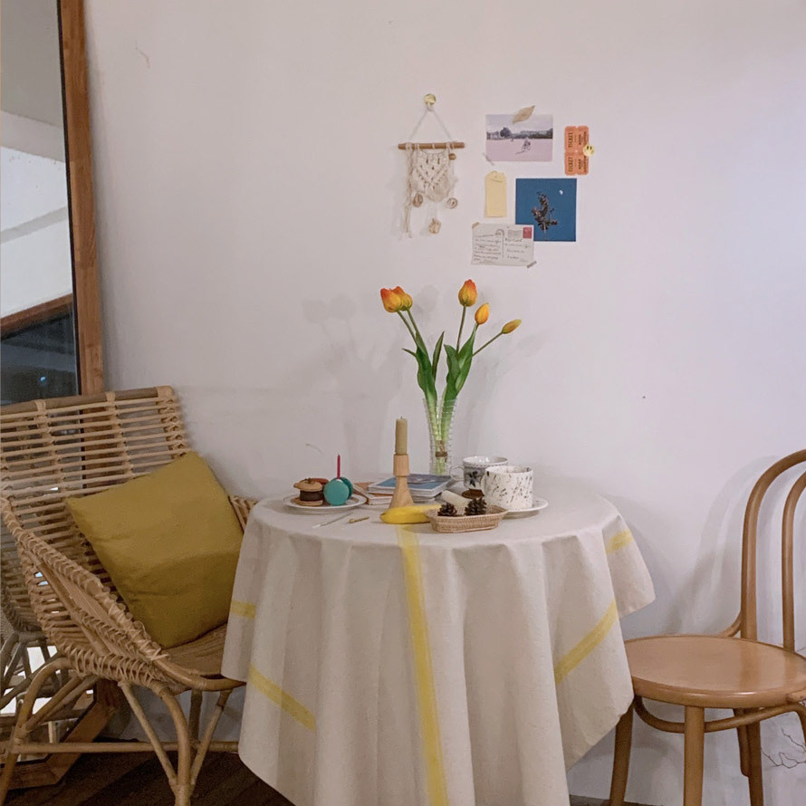 에블린 린넨 더블 스트라이프 방수 식탁보 2인M
