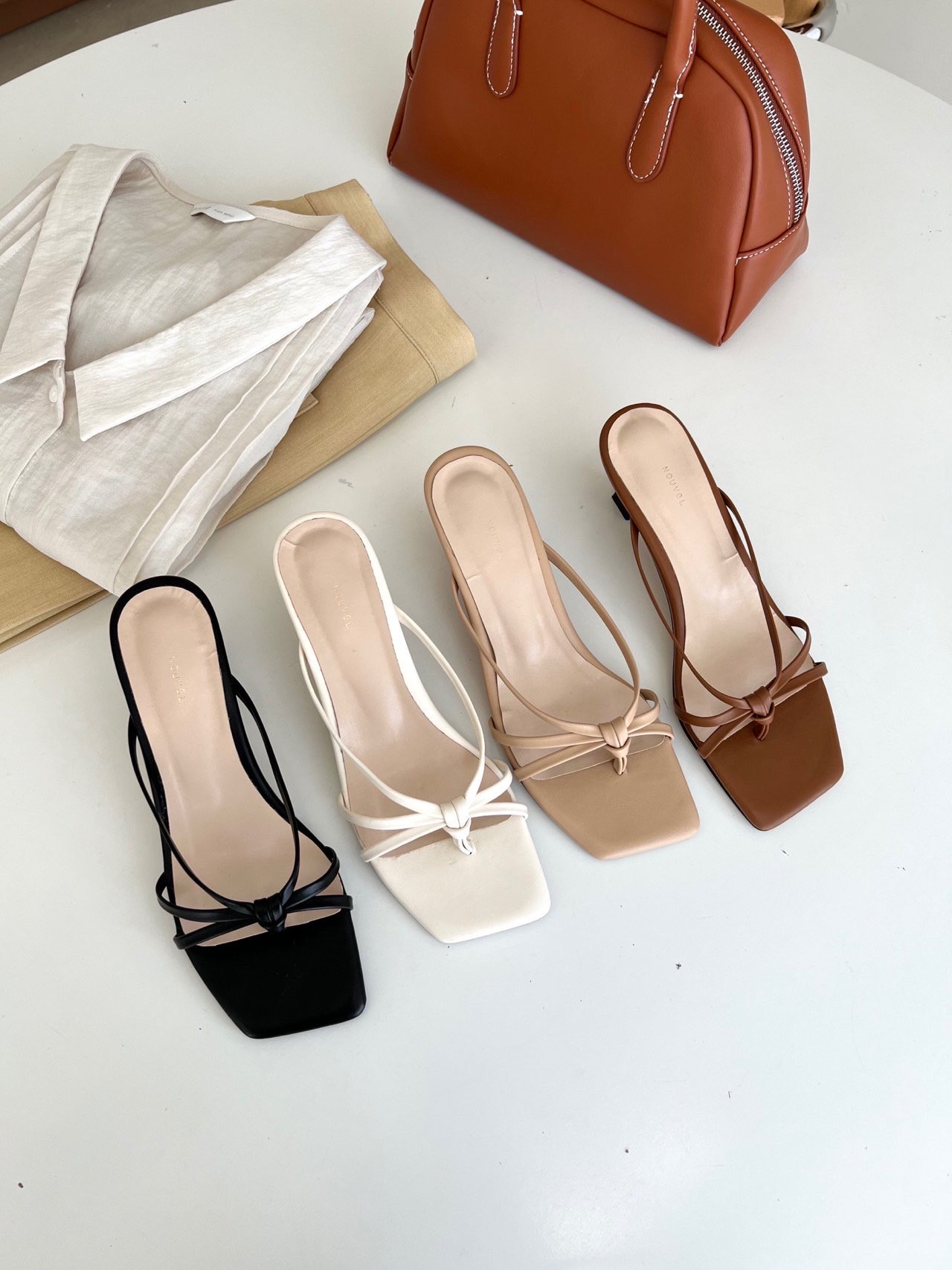 5cm 여자 스트랩 쪼리 미들힐 뮬슬리퍼 샌들힐 슬리퍼힐 4color 아이보리