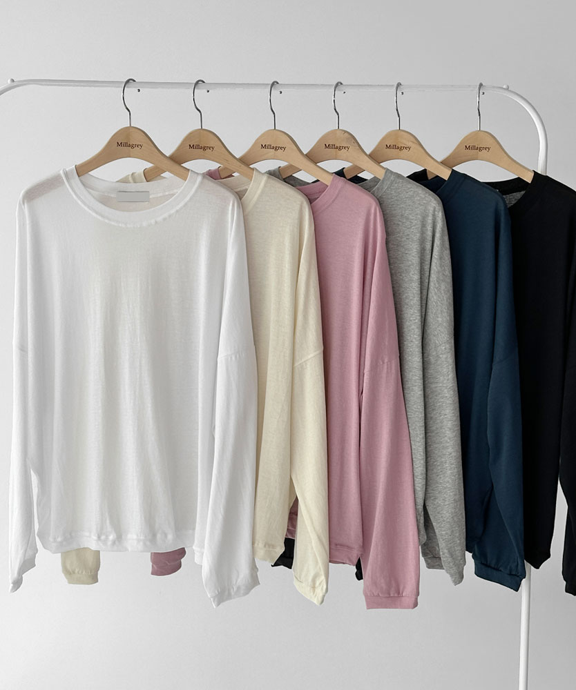 [원가 판매] 오버핏 박스 박시 여름 긴팔 얇은 긴팔 무지 시스루 맨투맨 티 롱슬리브