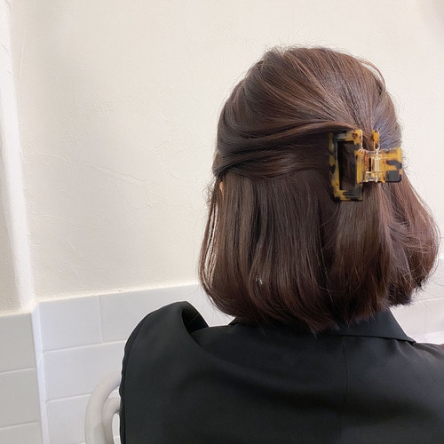 1탄 올림머리 자개 반머리 왕 큰 헤어핀 반묶음 호피 마블 투명 사각 수지 집게핀