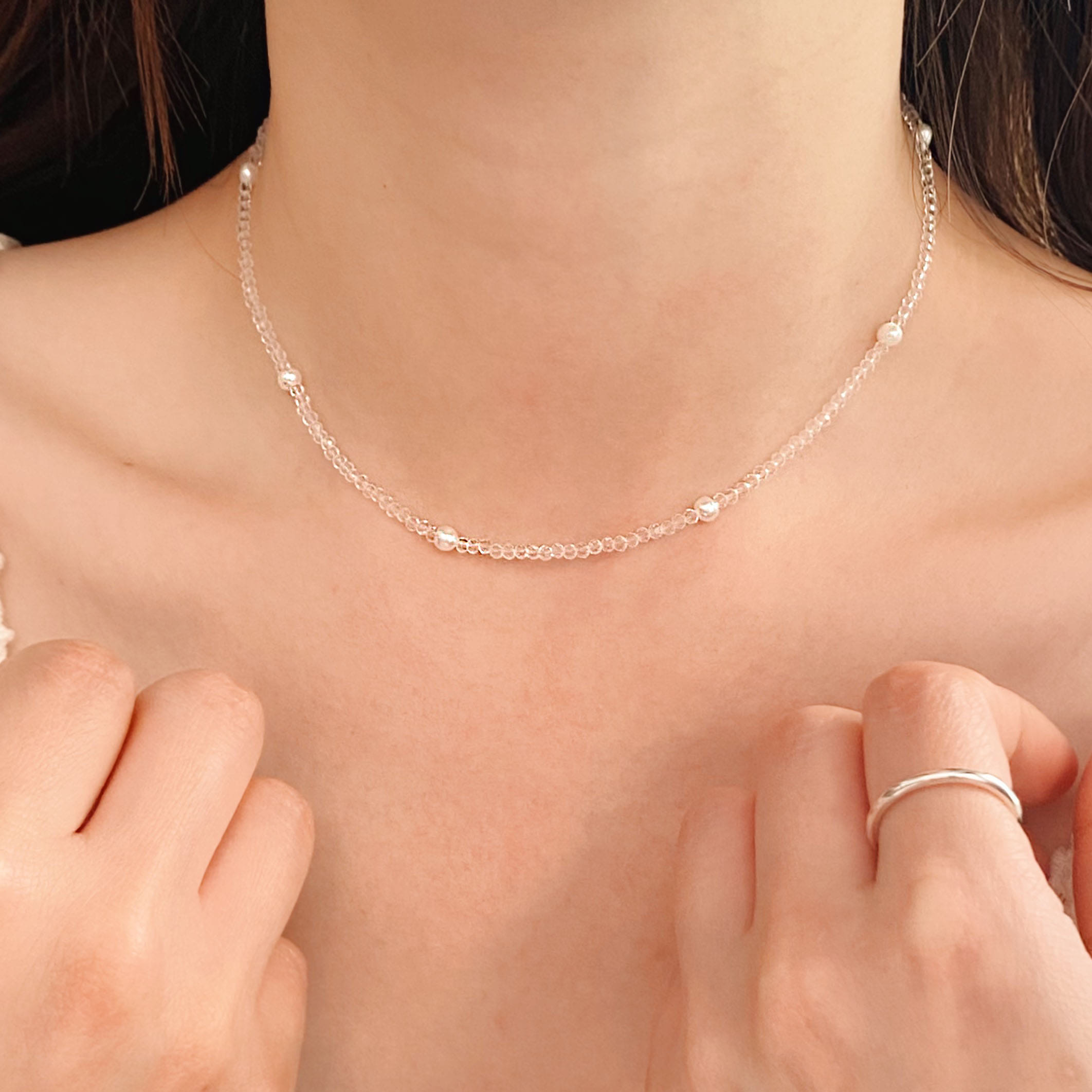 [Los.]투명비즈 진주 은목걸이 summer pearl necklace