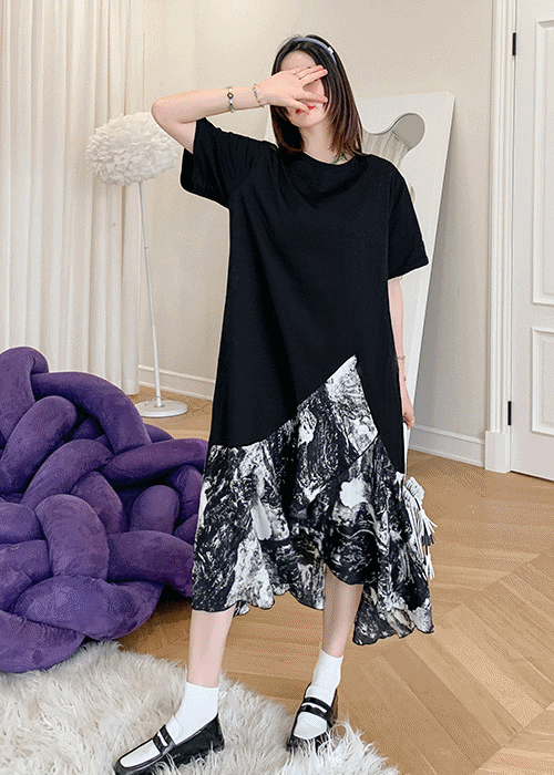 D102-3 루치프 빅사이즈 롱 레이어드 원피스 44-110