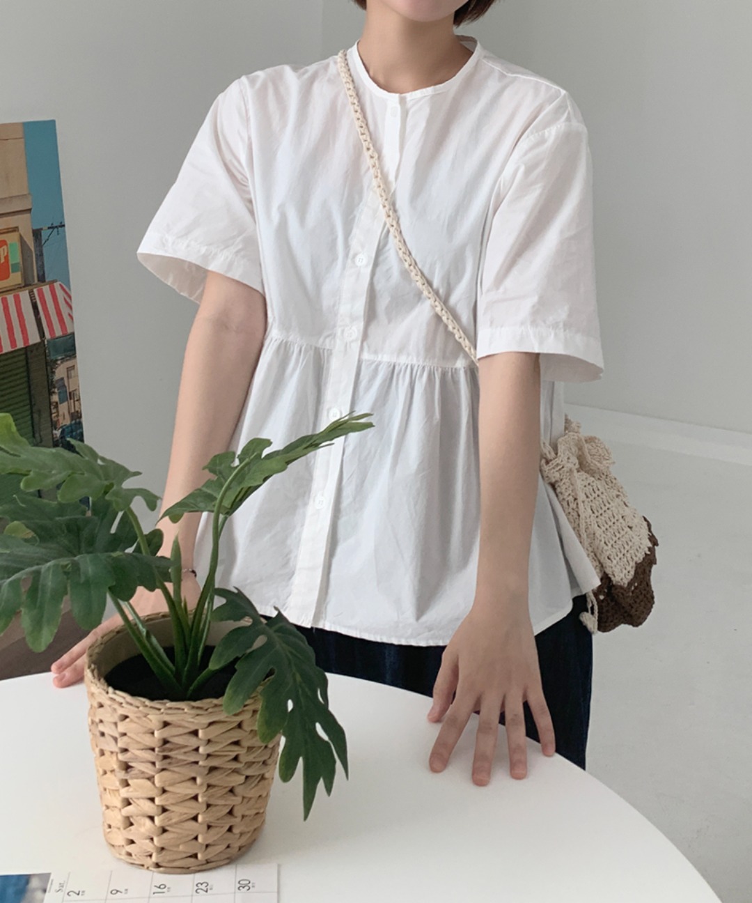 랜드 반팔블라우스