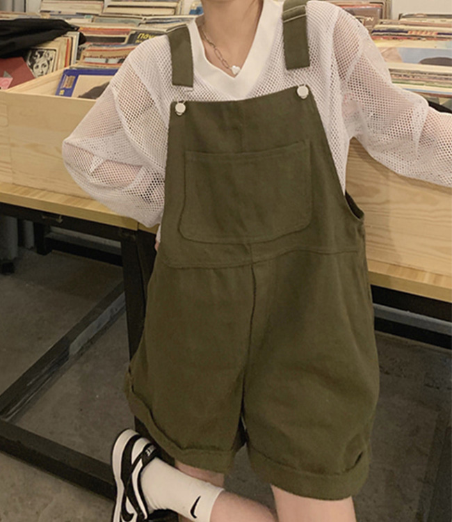 [5XL까지 공항룩 여행룩 휴가룩]조니 루즈핏 롤업 멜빵 반바지