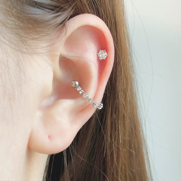 이너컨츠 귓바퀴 블랙 핑크 크리 체인 큐빅 피어싱