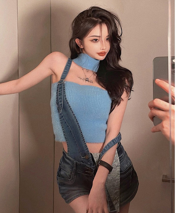 무료배송 [코디세트 탑+멜빵팬츠] 섹시캐주얼 블루투피스셋업 [#멜빵 #점프수트 #오버롤]