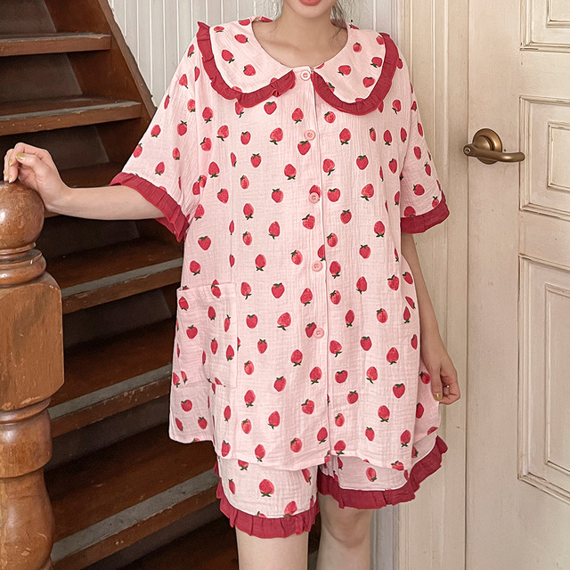 빅사이즈 55-120 딸기 프릴 요루 파자마 세트