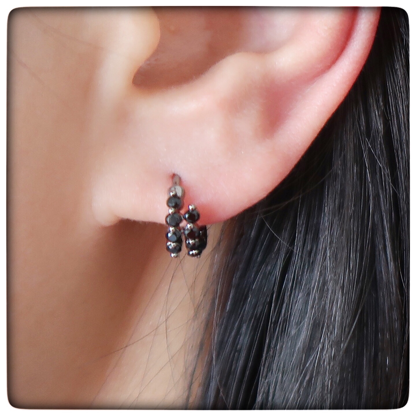 검정 큐빅귀걸이 실버 원터치귀걸이 작은 링귀걸이 은침