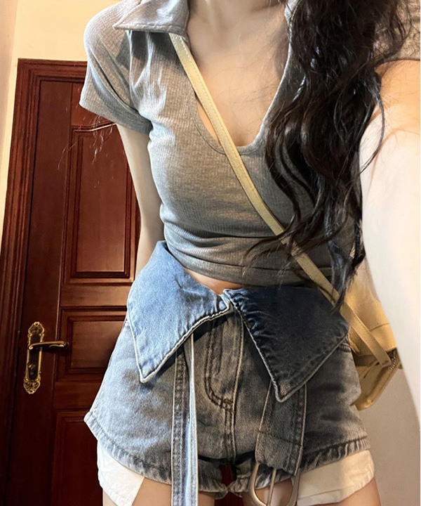 무료배송 [코디세트 탑+팬츠] 오버레이어 숏데님투피스셋업