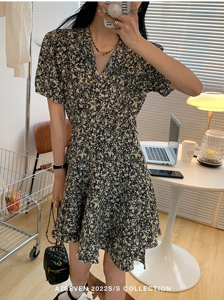 랩스타일 플라워 언발 미니원피스