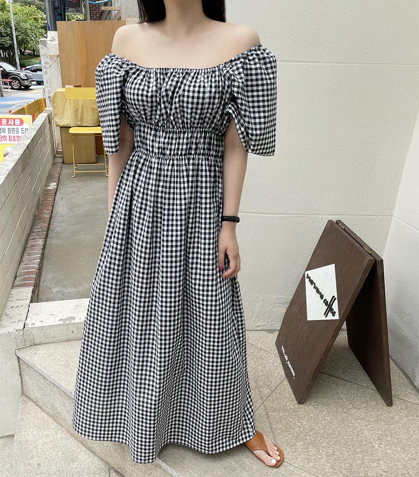 [55-88] 프리티 밴딩 오프숄더 롱원피스 (4color)