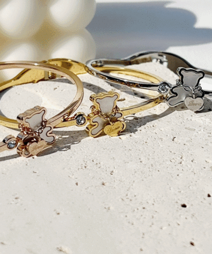[1+1✅할인] 화이트 자개 큐빅 원터치 팔찌 뱅글 원형💋 써지컬스틸 러블리 원터치 팔찌