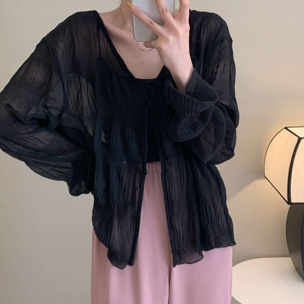 블랙 브이넥 시스루 얇은 여성 데일리 가디건 J17
