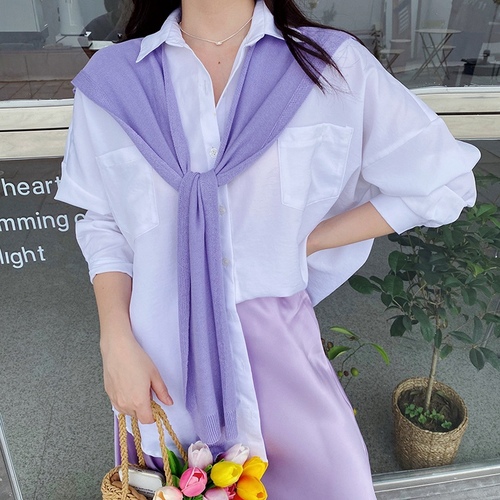 봄 여름 레이어드 페이크 어깨숄 봄 여름 셔츠 블라우스 원피스 티셔츠 코디 니트 가디건 하객룩 휴양지룩 머플러