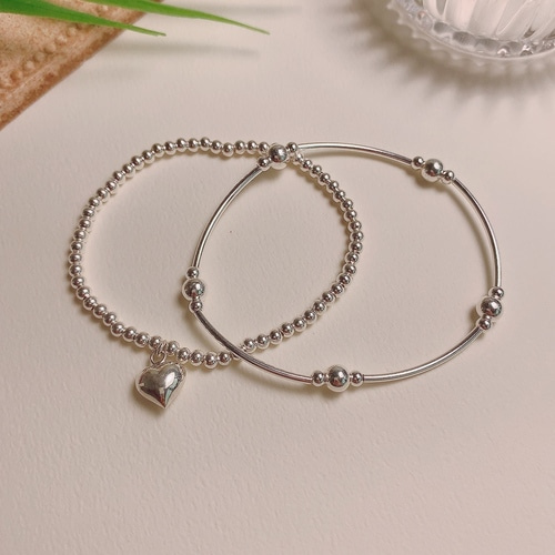 실버925 실버볼 하트 참 은볼 레이어드 팔찌 고무줄 비즈