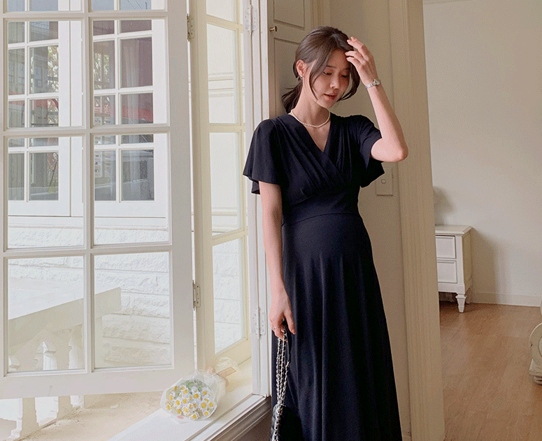 임부복*우아 날개랩 원피스 (수유가능/촬영룩추천)
