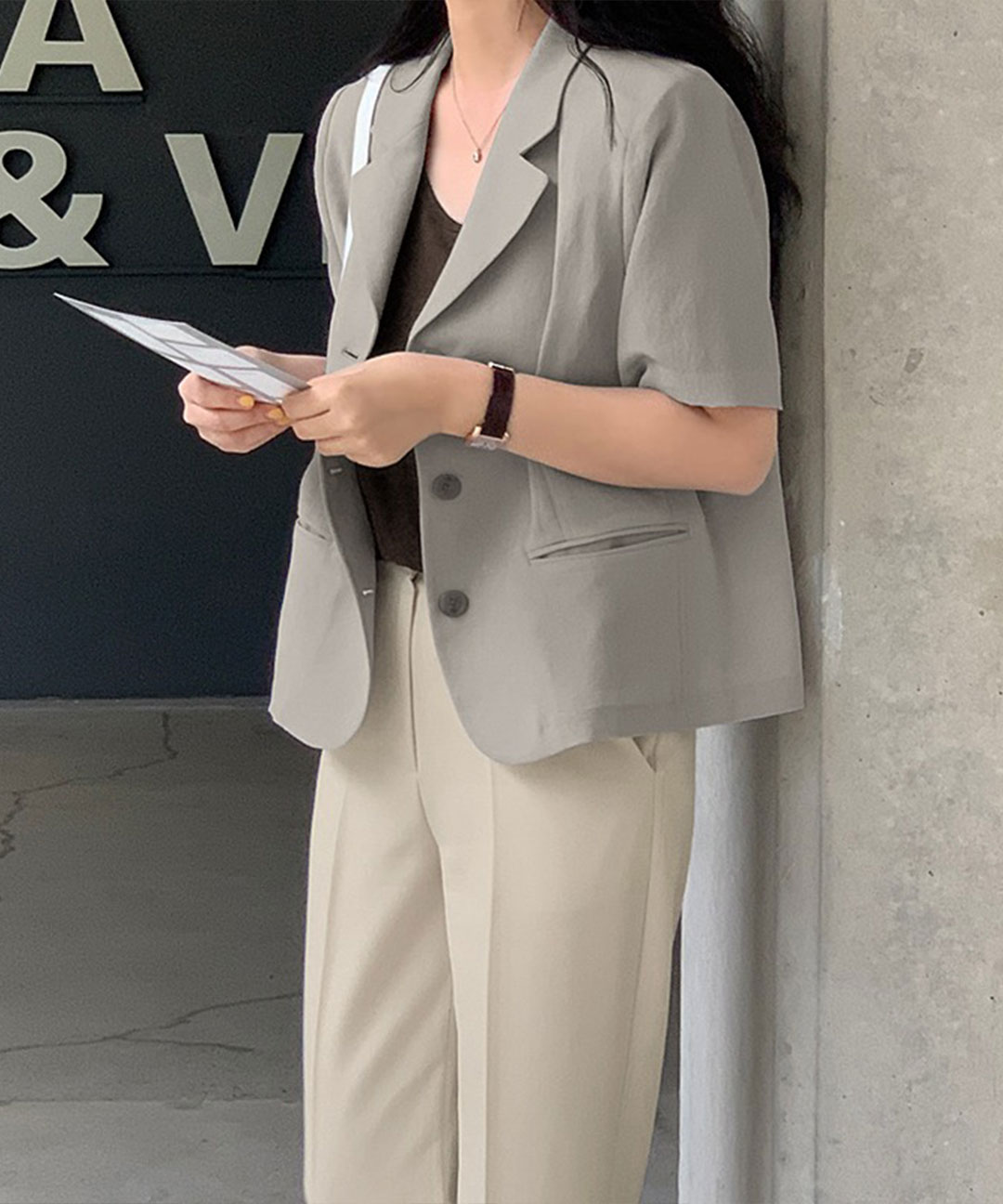 [단독][5천장 돌파✨/인기재진행/포멀룩][+S,M,L사이즈][Made]뮤드 싱글 반팔 숏 자켓 - 4 color