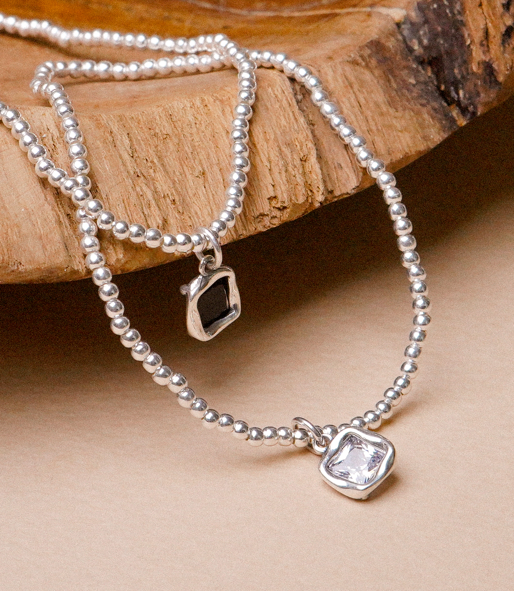 [925실버/무배] 블랙크리스탈 큐빅 고무줄 우레탄 은볼 펜던트 은팔찌
