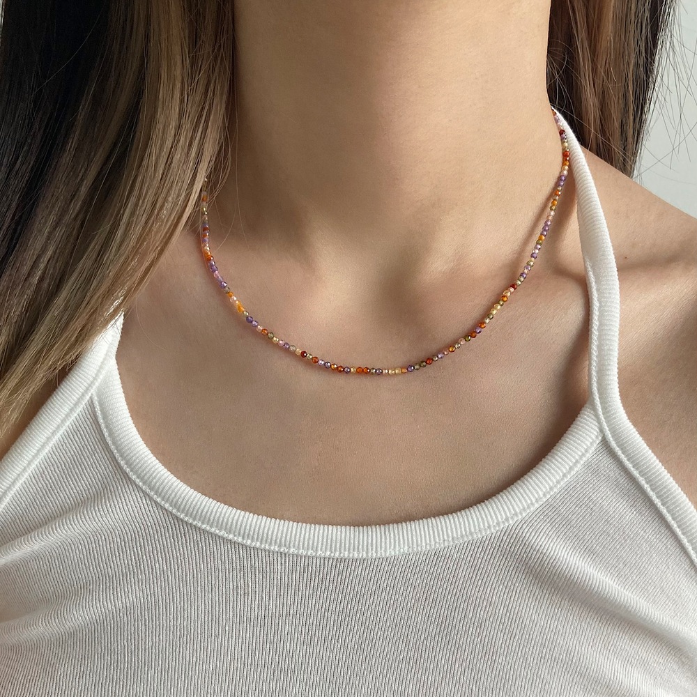 [써지컬] 웜 컬러 믹스 비즈 목걸이