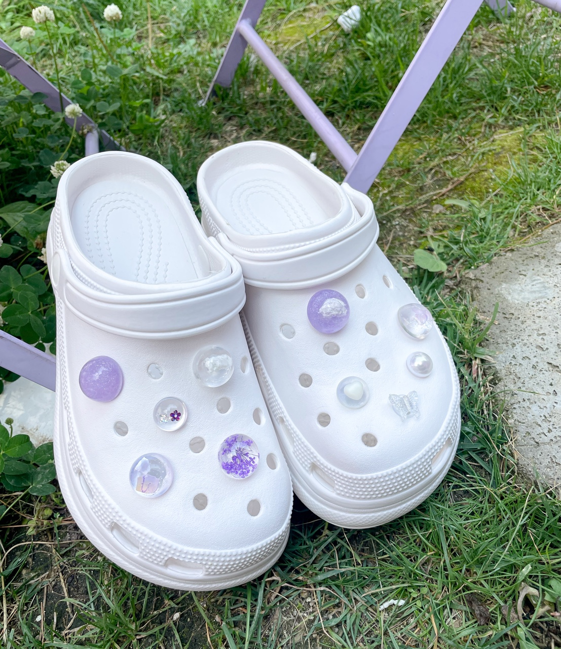 핸드메이드]purple&pearl 레진 참 파츠 신발꾸미기 set