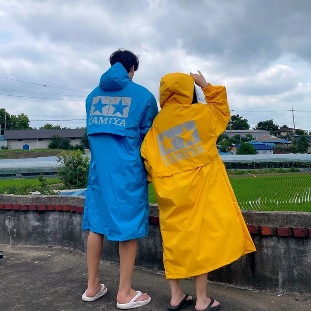 성인 남여공용 장마 방수 롱 레인코트 야광 우비 바람막이