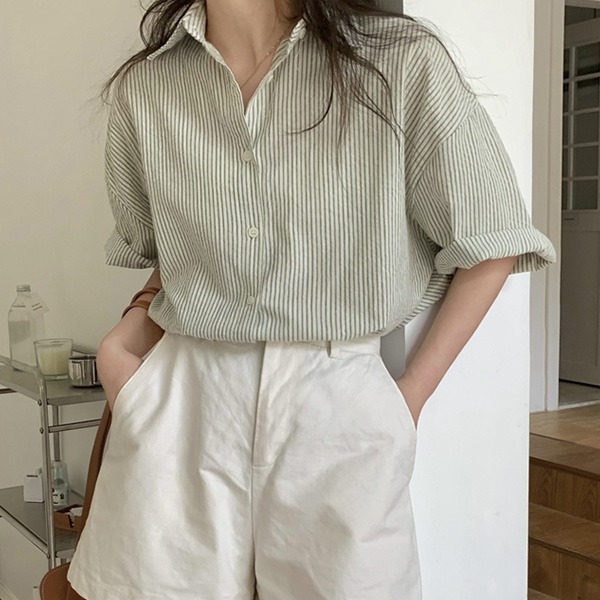 [여름/누적3천장✨/루즈핏/후기보장] 써너 스트라이프 반팔셔츠 - 4 Color (썸머/출근룩/린넨/단가라/오버핏/휴양지/하객룩/레이어드)