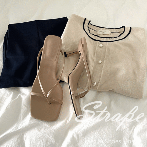 빅사이즈 6cm 스퀘어코 스트랩 샌들 힐 255 260 265 270