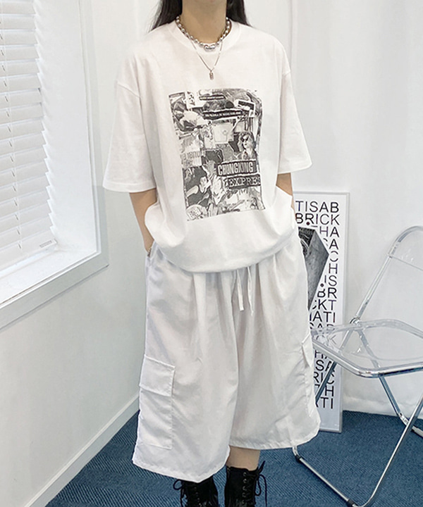 여자박스티 남녀공용 여성 빅사이즈 레터링 프린팅 나염 면 반팔티 티셔츠