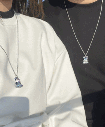 [핸드메이드] 투명 입체 베어 써지컬 목걸이