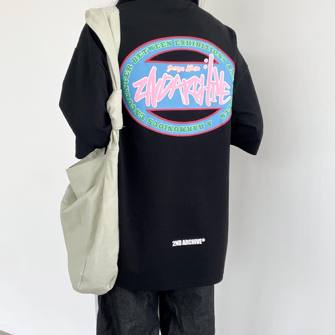 [1+1할인/오버핏/롱반팔/스트릿] 백프린팅 발포 타원로고 반팔티 4color
