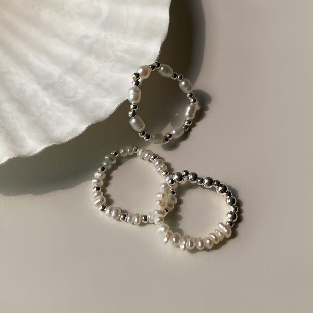 [실버925] 볼 믹스 진주 밴딩 반지 (3type)
