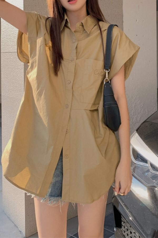 로지 폴로 카라넥 반팔 오버핏 롱 셔츠