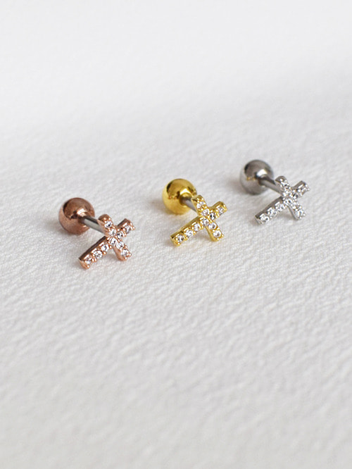 [써지컬스틸] 큐빅 십자가 바벨 피어싱