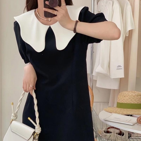 (빠른출발) 선영 웨이브 와이드카라 퍼프 미니원피스