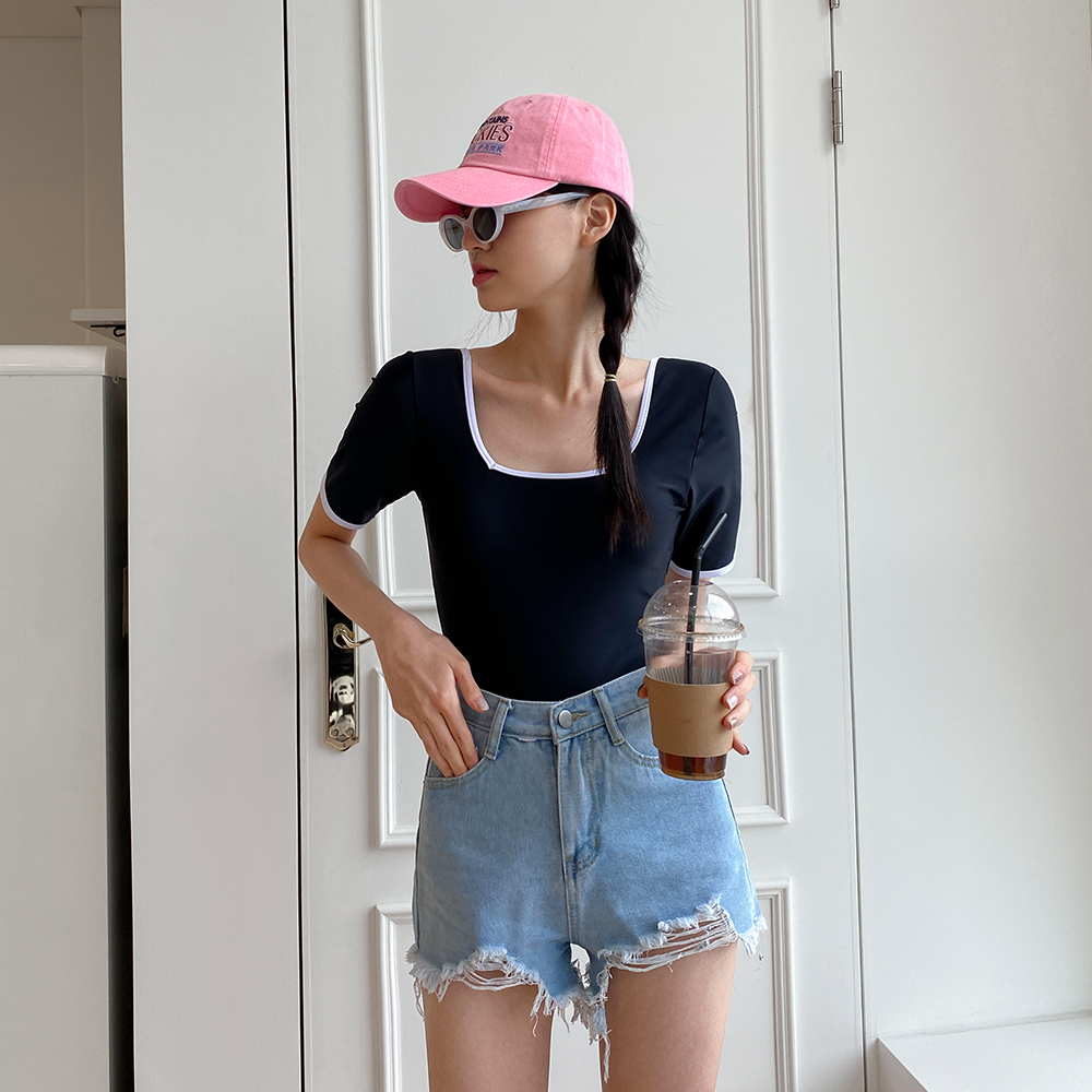 [무료배송][노출적은수영복]페스티벌 배색 모노키니 - 스퀘어 수영복 배색 바캉스 물놀이