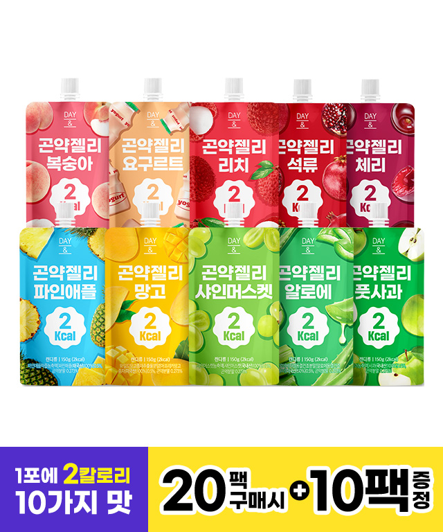 [2+1 특가]"2kcal/4kcal" 저칼로리로 든든하게! 과일 곤약젤리 10팩(체리/알로에/샤인머스켓/복숭아/풋사과/감귤/요구르트/망고/파인애플/리치)