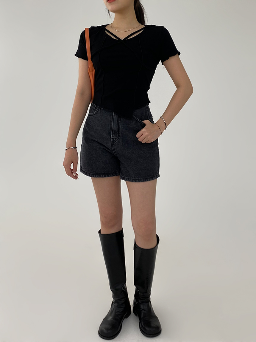 베이직 하이웨스트 데님 반바지 숏팬츠 2color