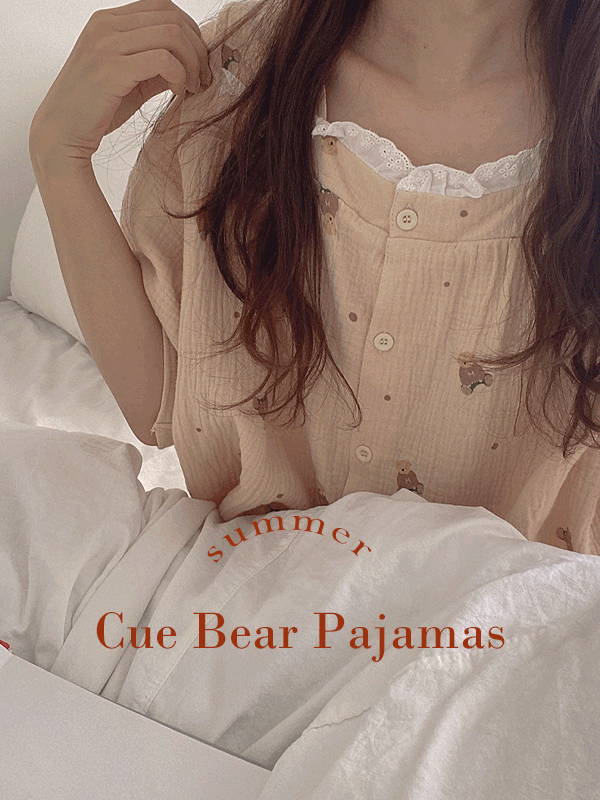 [👍요루면☁] H.made✔ 큐베어 잠옷 요루면 레이스 반팔 커플 여름 원피스 파자마 세트 2type 직진배송